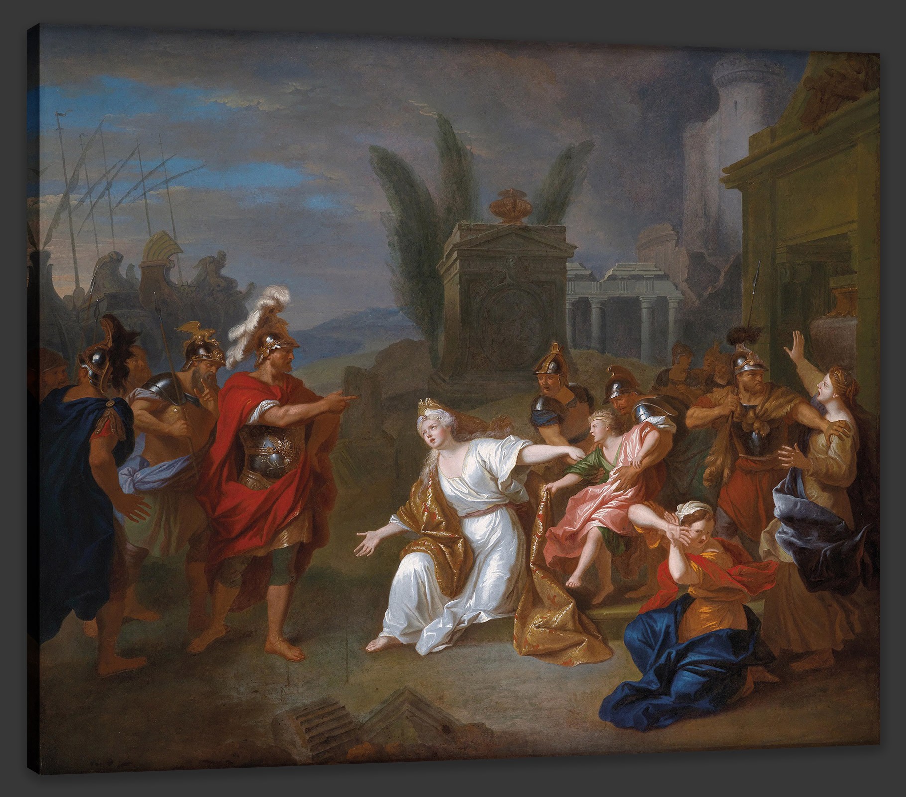 Louis de Silvestre, son of the official artist to the Grand Dauphin, was a student of his father, and other esteemed painters. Made court artist to Augustus II of Poland, then director of the Royal Academy of Arts, he was later granted a generous pension by Louis XV. The painting features Andromache, wife of Hector, kneeling before Odysseus, who demands her son. |