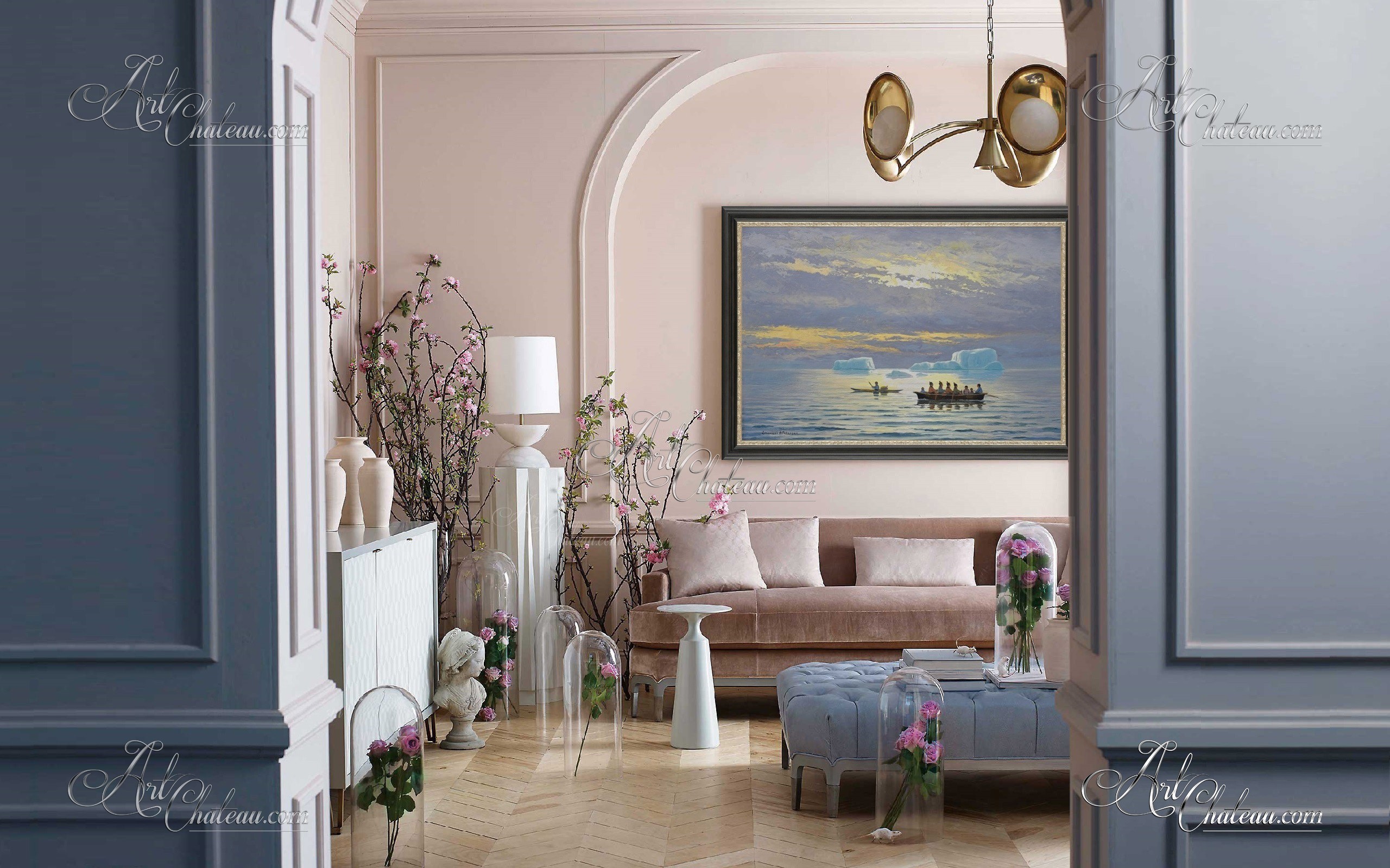 Danish painter Emmanuel Petersen spent much time in Greenland, rendering its plants, animals, natural beauty, and native people with their unique customs. Petersen’s paintings tried to awaken an appreciation for the island in his fellow Danes, hence his scenes are always sunny and never blustery. Here we see a typical Petersen painting showcasing native customs, and remastered at Art Chateau.