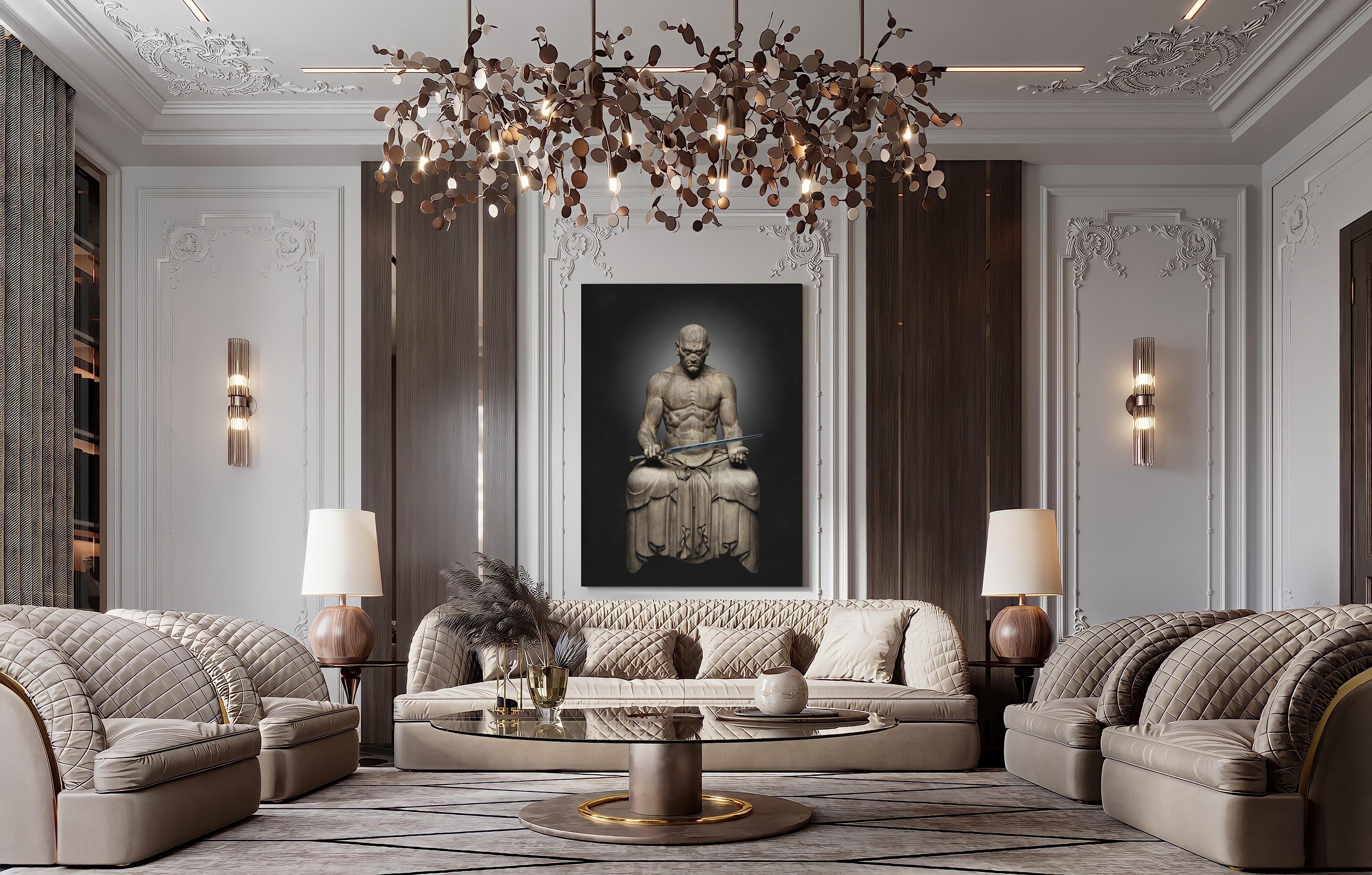 This large, Mixed-Media photograph from Barrett Evon is titled "The Flowering Knight," also known as a Hwarang. Here we see a modern vision of an ancient Korean warrior. They were an elite group of young men from Silla, a foregone kingdom of the Korean Peninsula that thrived until the late 10th century. Our Mixed-Media photograph has been meticulously rendered at our studios using our exclusive Trademark Technique.