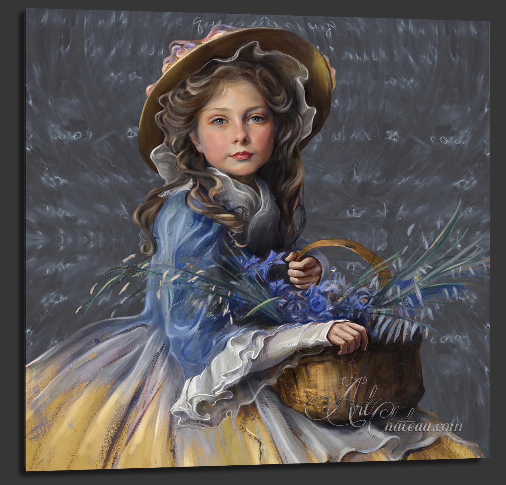 This engaging tableau by Barrett Evon is a highly nuanced vision of the iconic Mary Lennox and was inspired by author Frances Hodgson Burnett's soaring masterpiece. The Secret Garden's portrayal of reawakening spirits is full of beauty and emotion and is sure to inspire. This lovely portrait of an intrepid young girl was rendered with acrylic paint, Air Brush, Fine Art Pencils, Pastels, and Digital enhancements.